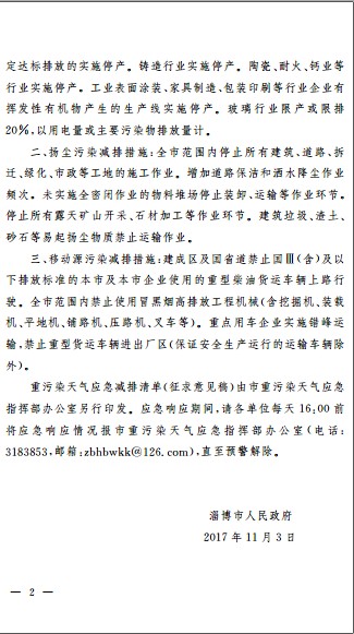 淄博市人民政府关于发布重污染天气橙色预警的通知