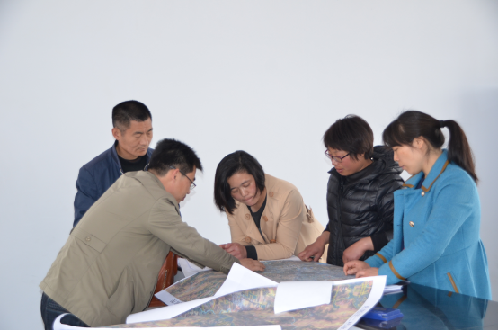 图为365bet官网888工作人员到悦庄镇指导镇村业务骨干“落地块”。