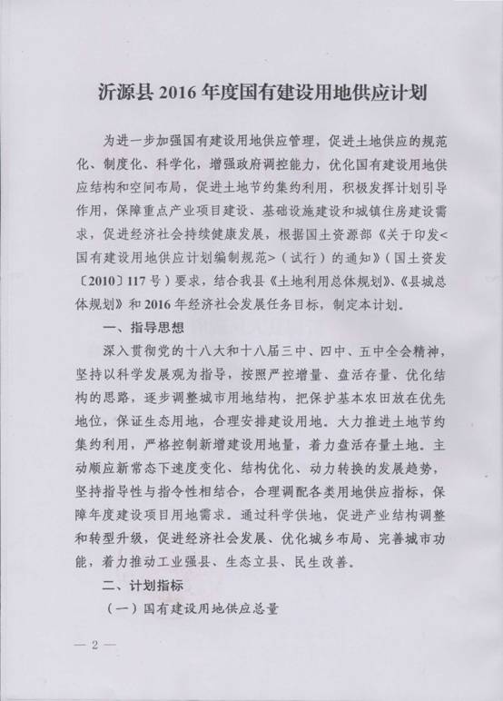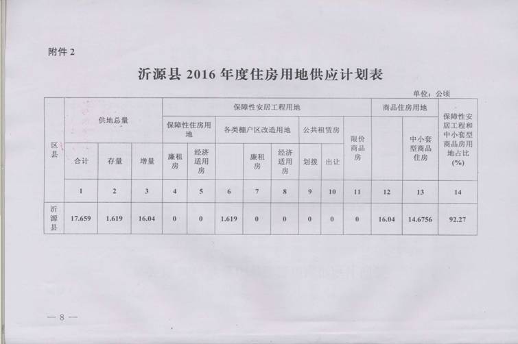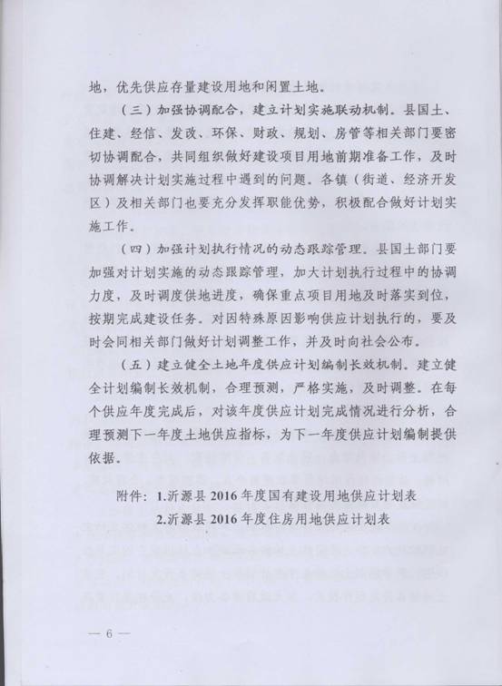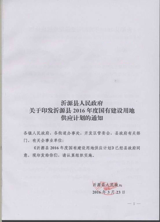 沂源县2016年国有建设用地供应计划